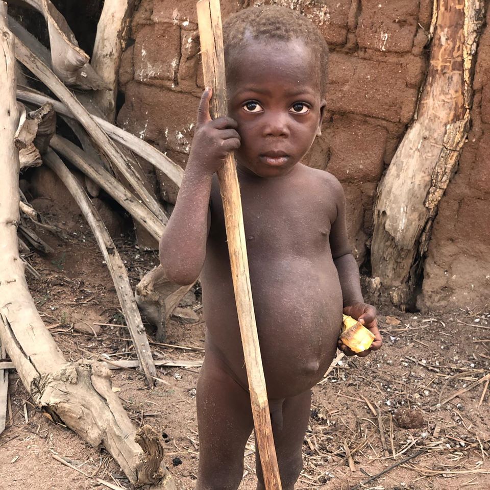 Little boy suffering from malnutrition/ parasites – extended tummy.